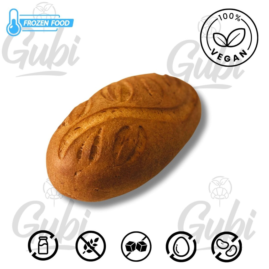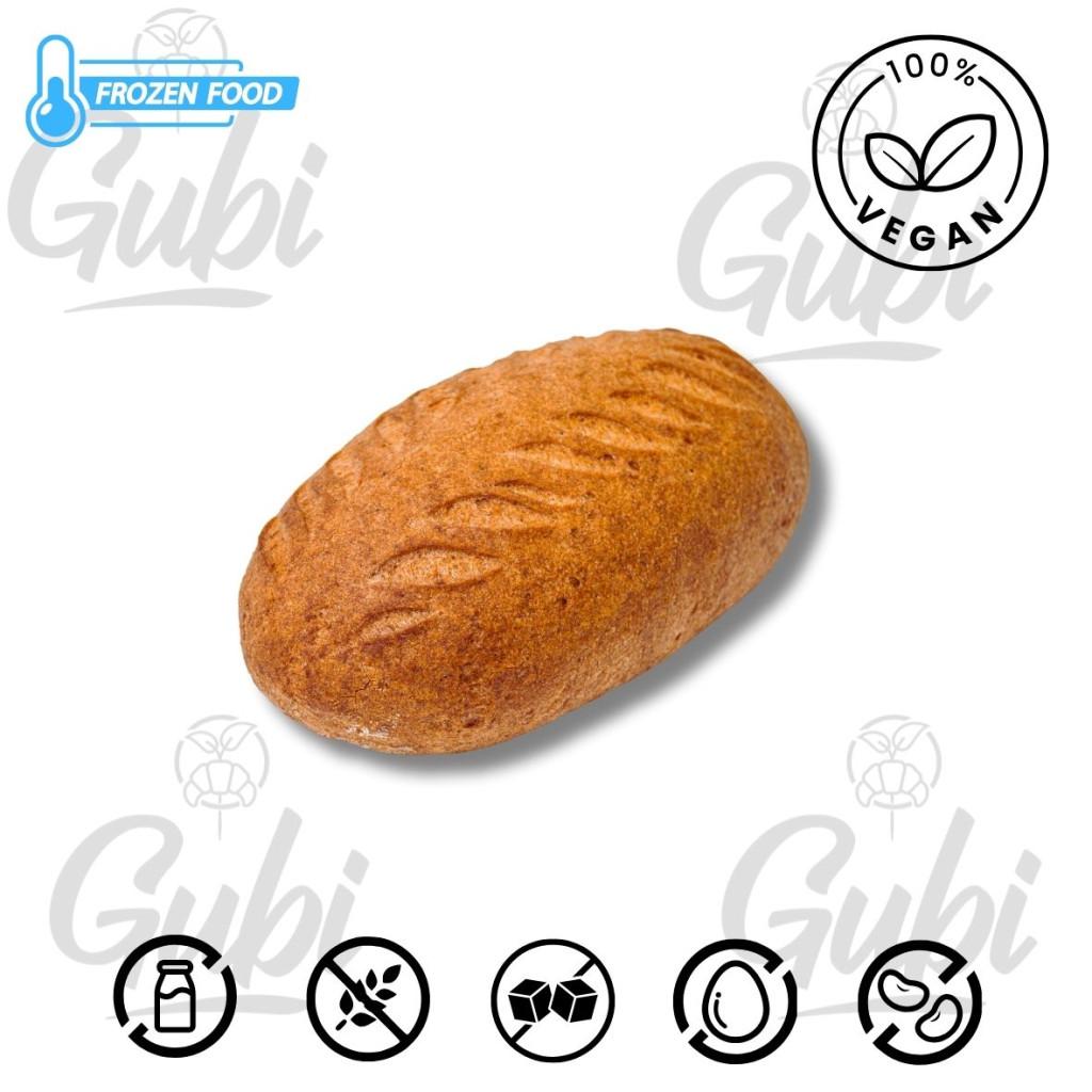 Gubi lisztkeverék (barnarízsliszt, kölesliszt, tápiókakeményítő, bambuszrostliszt, aranylenmagliszt, útifűmaghéjliszt), vegán vaj (növényi zsírok és olajok, víz, só, citromsav, béta karotin), Gubi Saját nevelésű vadkovász, só, víz, olívaolaj