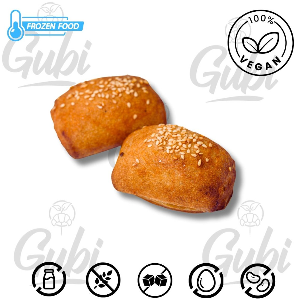 Gubi lisztkeverék (barnarizs liszt, tápióka keményítő, bambuszrostliszt, kölesliszt, aranylenmagliszt, útifűmaghéjliszt, citromsav, szódabikarbóna), sütőpor, vegán vaj (növényi zsírok és olajok, víz, só, citromsav, béta karotin), só, víz, borecet, vegán sajt (ivóvíz, burgonya és kukorciakeményítő, só, E202, E330, kókuszzsír, E160a), sűrített paradicsom, olasz fűszer (bazsalikom, oregánó, kakukkfű), olívaolaj, szezámmag